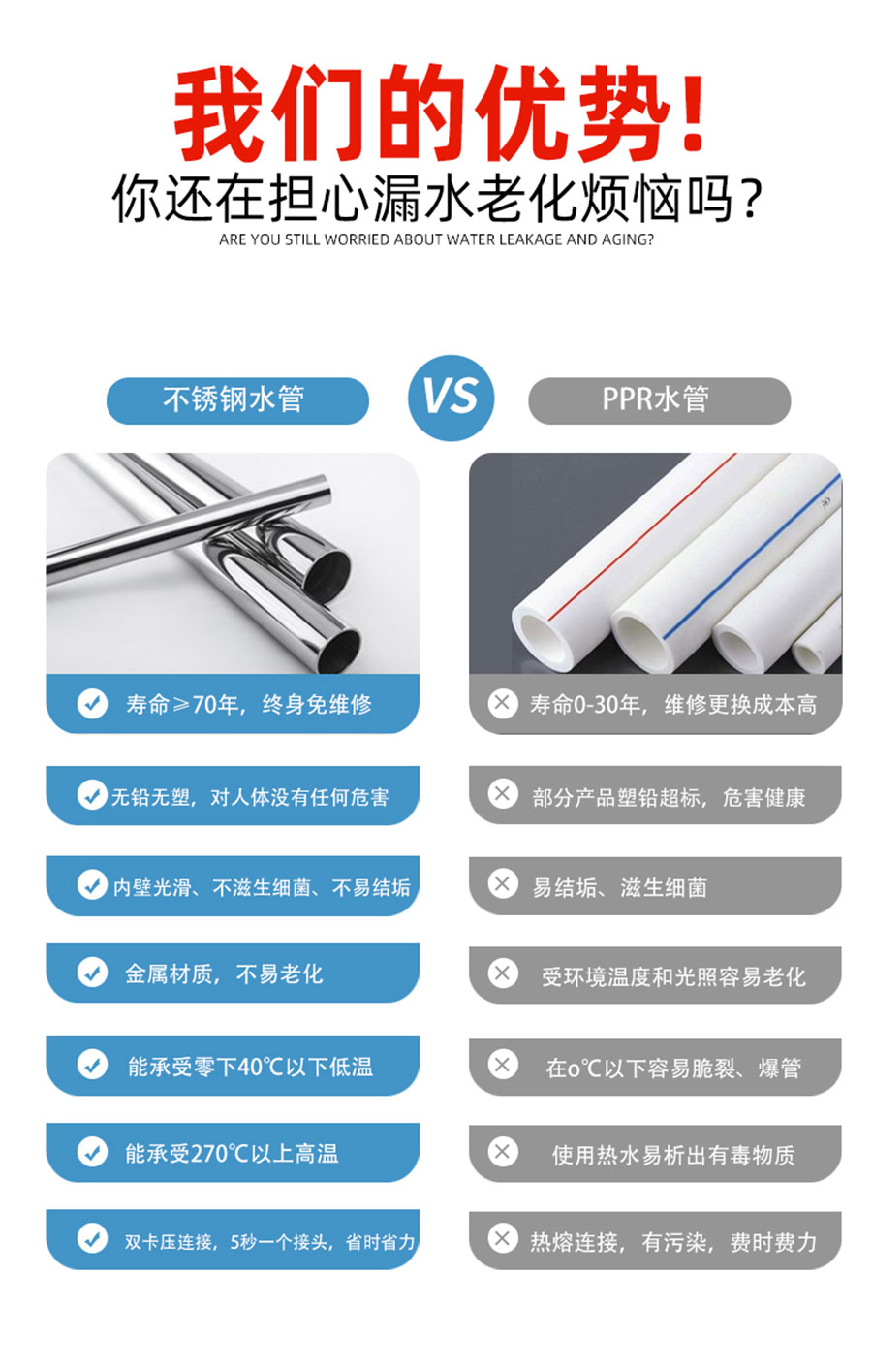 不銹鋼雙卡壓管件滿足我們生活中很多工程的需求,而且在不同的環境上能夠很好的符合環境上的需求與應用,在我們的使用中能夠很好的具有耐用的標準,包括長期的使用具有耐腐蝕與抗銹的作用,在膠圈耐久性明顯提高,且雙卡壓密封圈左右受擠壓均勻,密封圈不會從側面倍水壓擠出,彌補了單卡壓適用過程中的不足。在安全可靠的應用中都是高的滿足使用。