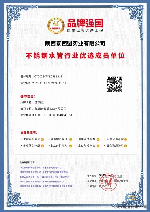 秦西盟水樂(lè)榮獲“不銹鋼水管行業(yè)優(yōu)選成員單位”,開啟品牌發(fā)展新征程